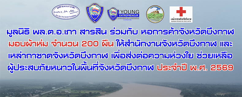 (12 มค 2569) มูลนิธิ พล.ต.อ.เภา สารสิน ร่วมกับ หอการค้า จ.บึงกาฬ มอบผ้าห่มสู้ภัยหนาว แก่ประชาชน จ.บึงกาฬ
